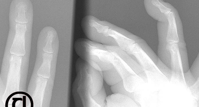 Radyoloji: Bazen distal falanksın dorsal yüzeyinde küçük bir avulsiyon kırığı görülebilir.