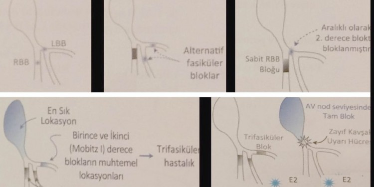 Sağ dal bloğu ve  Sol dal bloğu veya Sol Anterior Fasiküler Blok  ile  Sol Posterior Fasiküler Blok olmasıdır. Trifasiküler bloklar ventriküler kaçış ritimleri ile AV tam bloğa ilerleyebilir.